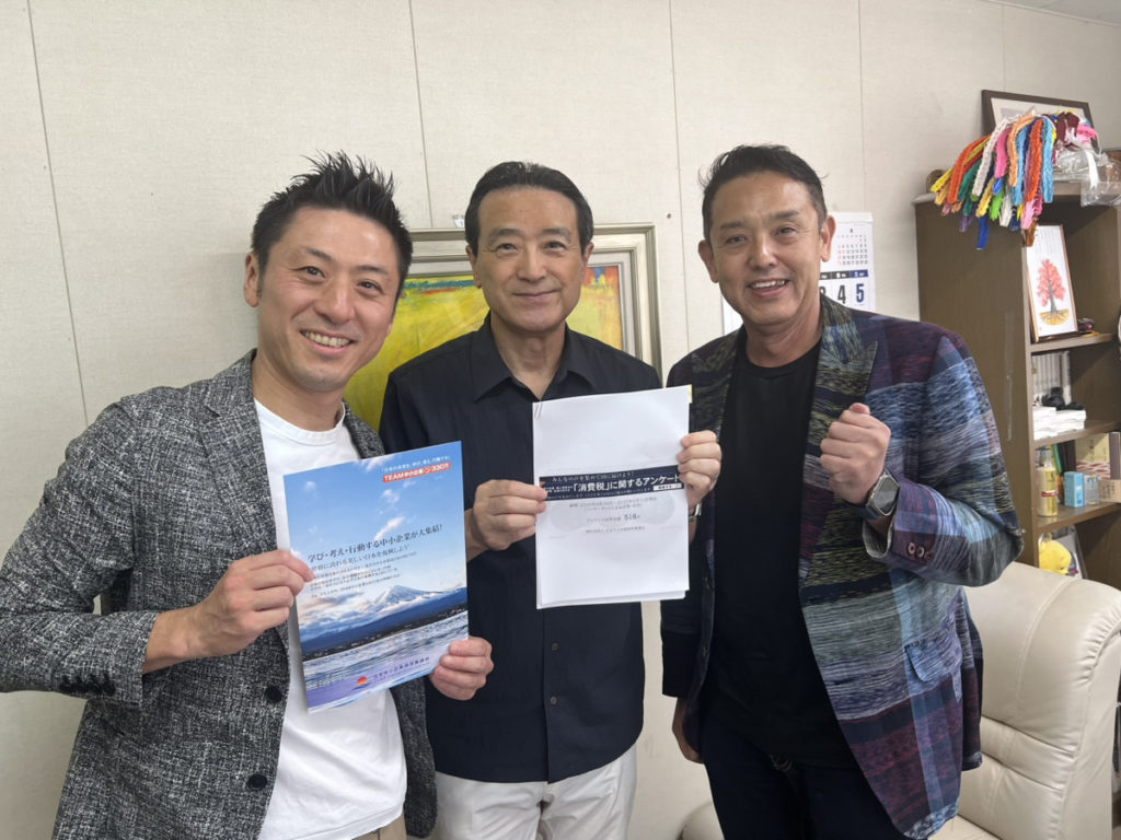 先日、江田憲司衆議院議員にお時間をいただき、「消費税に関するアンケート」と日本中小企業審議会としての「答申書」をお渡しして、意見交換をさせていただきました。